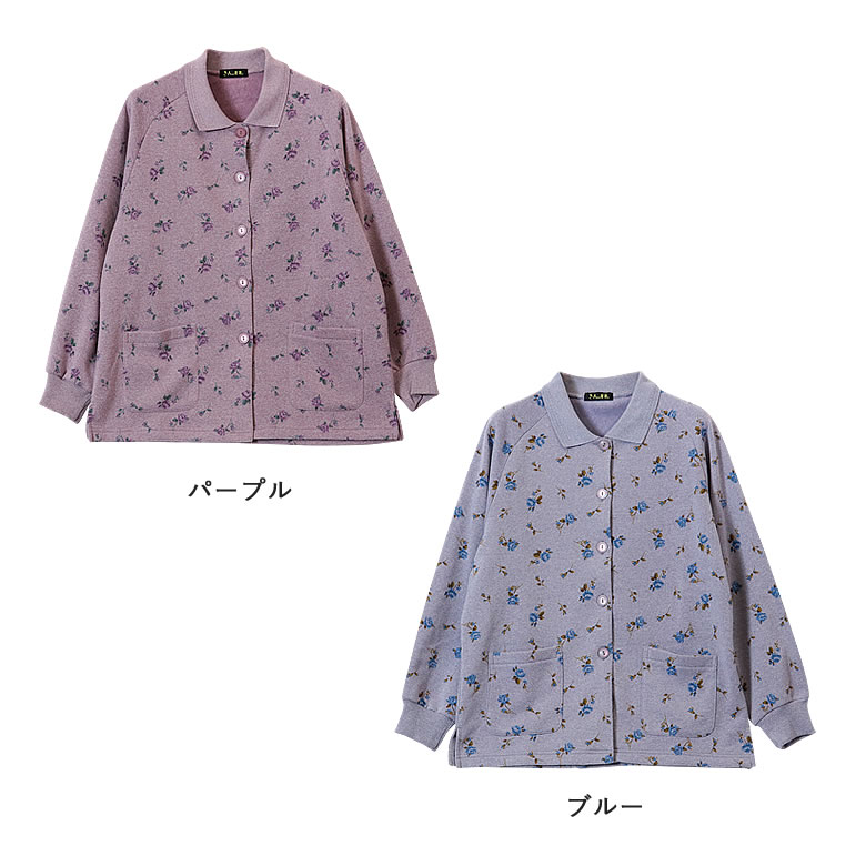 カーディガン ニット レディース 秋冬 秋 冬 トップス 羽織り 裏起毛 前開き バラ柄 襟付き 婦人服 上品 ミセスファッション シニアファッション 60代 70代 80代 ハイミセス 婦人 レディース おばあちゃん お年寄り 高齢者 誕生日プレゼント ギフト