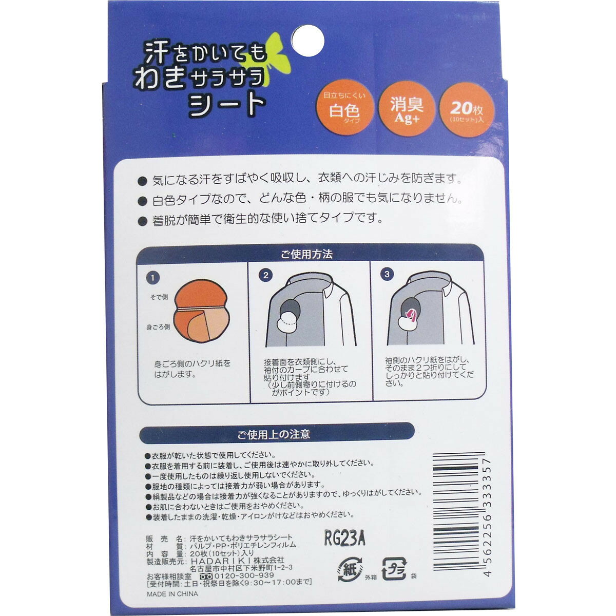 ■サイズ 個装サイズ:100X153X45mm 個装重量:約150g 内容量:20枚入 ■素材 パルプ、PP、ポリエチレンフィルム 【使用方法】 (1)身ごろ側のハクリ紙をはがします。